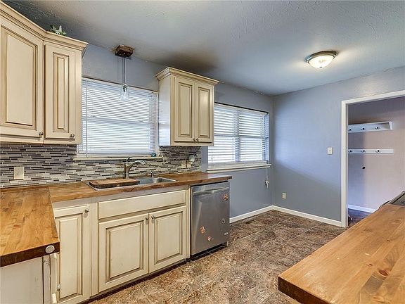 Cute updated 3 bed 1.5 bath brick home. Beautiful kitchen with a butcher block counter top ,tiled back splash, lots of storage, painted cabinets and stainless appliances. Original hardwood floors throughout the home. Backyard has a lot of space, an in-ground storm shelter and fire pit. Don't miss this one, it wont last long.