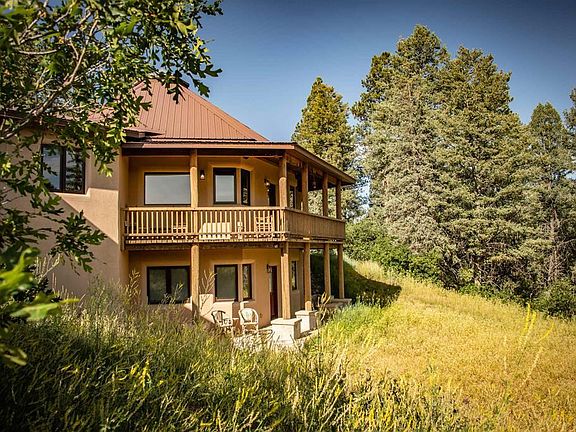 Let’s Dream for a second……Owning your own Glamping or Cabin Paradise………Tired of having neighbors in your campground? Keep this property a secret to yourself or invite others to join you in a Glamping Sanctuary. The Property is a Hidden Gem and I do mean Hidden! The home is in the middle of a beautiful, wooded park- like setting with Elk, Deer, Beaver, Bear, Turkey and other numerous wildlife that also consider this home. This is where your enjoyment for wildlife viewing and hunting begins. This property has an AMAZING, beautiful home in which you will enjoy a Pristine view of Square Top Mountain. With NO HOA this is a rare unique home or business opportunity in Pagosa Springs Colorado. The home is a true Adobe Earth Block home that when you walk into your open floor plan you are welcomed by enormous, gorgeous logs in a true "Hogan Style" that creates a one of a kind living room. I have been told this is the second largest Hogan of its kind in the U.S. This a unique home features four bedrooms, and a main living room- dining room- has an open floor plan perfect for reading your favorite novel or just relaxing. New French Doors lead to a lovely patio where you can enjoy your coffee in the morning and a glass of wine at night.... while watching wildlife go by. The potential business and the agricultural opportunity with this property have countless possibilities. This property is partial fenced with close proximity to the San Juan National Forest, is perfect for horses. The kitchen has been updated and has new appliances. The master is on your main floor with 2 rooms currently being used as bedrooms and 2 baths. The 3/4 downstairs bathroom may not be permitted...check with County. Down the circular staircase is the largest room again being used as additional sleeping quarters and a 3/4 bath (not permitted) and private entrance. A Bonus Feature is an approximately 300 Sq Ft room with its own temperature control guarded by an original jail room door brought in from an old Floridian jail. This lockable feature is currently being used for storage with wine room possibilities. At the entrance to this property is the bridge you will be crossing on this covering the Little Blanco River which runs along the entrance to this property. There is a guest house with one bedroom, one bath with garage for additional lodging or office space. The pasture is located at the entrance of the property. The location is perfect for your retreat and is located where there are plenty of hiking trails, ATV riding and Horseback trail riding, to explore nearby. The home has recently been remodeled including a new roof as well as new windows throughout the home. A heating boiler system for the in-floor radiant heating system was recently replaced, in addition, interior and the exterior of the home has recently been painted, the attached oversized heated garage was completely painted and finished with epoxy on the floor, as well as a 2nd unattached garage for your vehicles or storage with a new concrete floor and new garage doors. Working from home with Starlink High speed internet while looking at the mountains and wildlife could make this your next paradise. This is a one-of-a-kind property, make sure you put this one at the TOP of your list - and it's only 10 minutes to downtown to Pagosa Springs