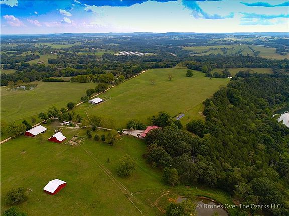 The Grand View! Beautiful farm with amazing Kings River views and frontage. 3288 square foot Brick home with 5 bedrooms and 3 baths has been updated with new flooring and paint. 2 screened porches, large sun room adds additional living space, 2 car garage, and 2 car carport. 45 acres of pasture currently houses 25 head of cattle. Pipe fenced and cross fenced, hay barn, 40x60 heated shop, storage building, and grand old red barn. Water to all the pasture is run in freeze proof line. This property is very efficient with 36 solar panels and a Hardy wood burning furnace in addition to central heat and air. Property conveys with New Holland tractor with finish mower and a 4 seater Kabota side by side. The water! 1,100 feet of Kings River frontage. This section of the river is rated #4 Nationally for Small Mouth Bass fishing. Full size road leads to the river for easy access. Plenty of cleared space for another home or cabins. 2 stocked ponds, one with a bridge to the island and home to a very large catfish! Must see!