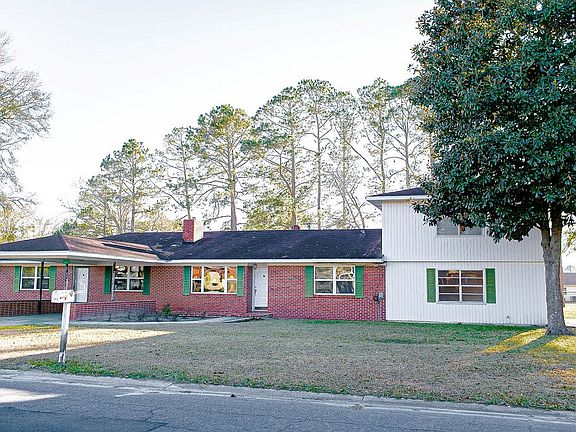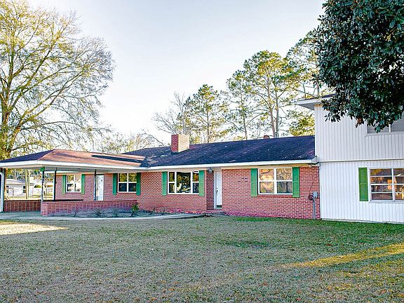 Hurry to see this great in town home set under huge oaks and magnolias in Alma, GA. The main level features a split 4/2 floor plan connected by a central hallway. Off the hallway there are two living areas, a formal dining room, and a kitchen large enough for a small table. The primary bedroom has a walk in closet and the ensuite features dual vanities. The 3 remaining bedrooms are all quite large and share the secondary bath. One living area features built in cabinetry and a seating area, while the other has a fireplace, both have entry doors. Just off the kitchen is a huge enclosed porch that can be used all 4 seasons. From the porch there is access to the 3 bay carport which could easily be converted to an enclosed garage, the fully fenced back yard featuring a detached storage building, and the unfinished upstairs above carport. The apartment is set up to be finished with a kitchen, living/dining room, bedroom and bathroom and has a separate entry. New A/C in 2017 & windows in 2014