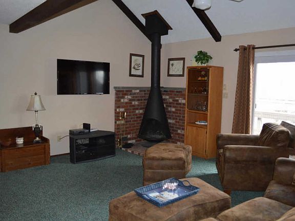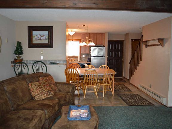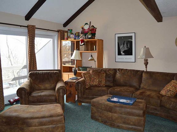 Welcome to unit 121 at The Village of Camelback! Walk to the slopes from this 3 bedroom, 2 .5 bath townhome which has been owned for almost 25 years by one family. The expanded deck allows year round outdoor entertainment area. The open floor plan in inviting and has been nicely updated. Included in the eat in kitchen are 42 inch maple finished cabinets, a new stainless self cleaning stove (March 2017), trash compactor, microwave , Corian counter tops and large sink with goose neck retractable faucet, and refrigerator with ice maker. The upgraded Armstrong floor allows for easy cleaning less noise. the great room features a breakfast bar with Corian counter plus stools. The vaulted great room is enhanced with wood trim, beamed ceiling, wood burning stove pipe fireplace with brick