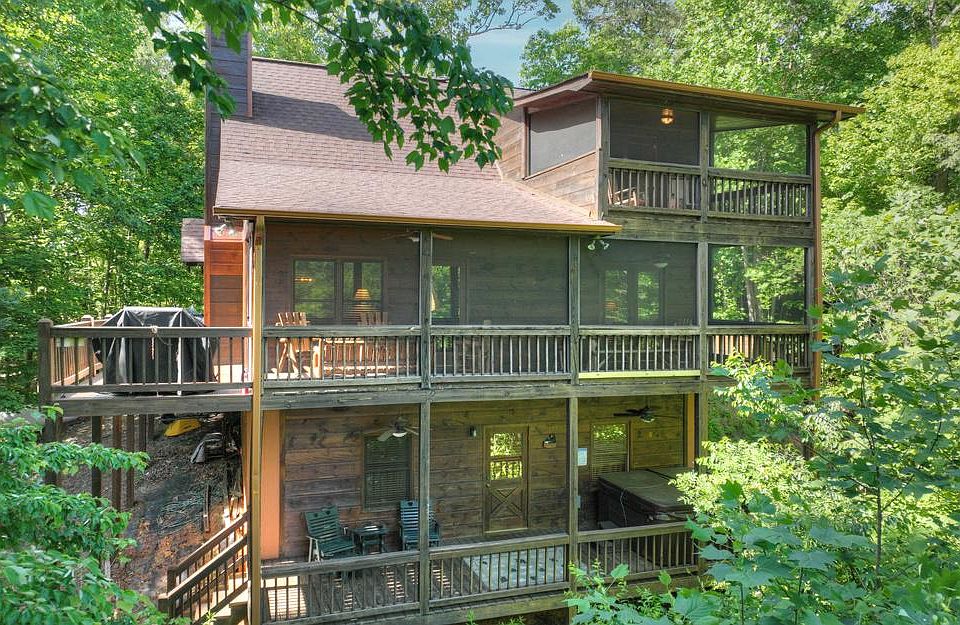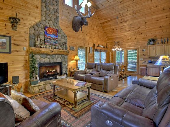 Leave the hustle & bustle behind & enjoy the journey to your dream haven through the picturesque mountain scenery! Privately tucked away just minutes from Hwy 515 & downtown Blue Ridge, this mtn retreat currently used as an STR is just a short drive from all NGA has to offer. Surrounded by peace & tranquility, you will delight in your time spent outdoors soaking in the lovely mountain view, as well as from within the cozy dwelling. This cabin offers a functional floorplan w/ 3 levels of living & 3 levels of outdoor space - fantastic for both part & full-time living. The terrace level features a spacious game rm, access to the patio & BR/BA + bunk rm; the main offers a spacious open living space flowing from the kitchen to dining & living rm w/ stone fireplace, as well as 1BR/1BA; & last, but not least, the upstairs offers the master ste complete with its own pvt balcony. In addition, youll enjoy plentiful parking, firepit area, & more. Ready? Set. Lets go!