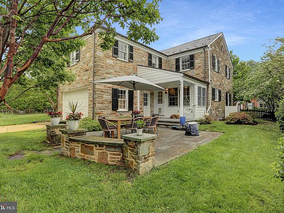 Nestled in the heart of Baltimore’s coveted Homeland neighborhood, this pristine 1950s stone colonial is a rare architectural gem that blends timeless charm with thoughtful updates and unbeatable walkability. Recent major updates include a slate roof,  copper gutters,  shutters (2022), and most windows have been restored, and chimneys relined.  Every detail has been carefully curated for lasting beauty and function.    Step along the stone walkway to discover a home renovated with utmost care. The formal living room features a wood-burning fireplace flanked by double built-in bookcases, while the elegant dining room is accented by chair rail molding and a stylish light fixture. The kitchen is bright and sunny, designed with custom cabinetry and countertops, stainless steel appliances, an island, and a cozy dining or sitting area.  Upstairs, the expansive primary suite offers a luxurious private bath, complemented by three additional bedrooms and a second full bath. Throughout the home, gorgeous hardwood floors, recessed lighting, and plantation shutters speak to the quality and care throughout. The finished lower level includes new luxury vinyl plank flooring, a welcoming family room, a laundry area, and a half bath, and an extra storage area.  Outside, entertain or relax on the beautiful stone patio with a seating wall, overlooking the level, fenced backyard—perfect for grilling, games of croquet, a bocce match, lacrosse practice, or simply enjoying a quiet afternoon.  The property also includes an attached two-car garage and private rear driveway access.  Beyond the home, Homeland offers an unmatched lifestyle—enjoy historic walking paths, nearby fine and casual dining, the Enoch Pratt Library, and proximity to premier private and public schools, universities, world-class hospitals, and major league sports venues. It's just a short stroll to the iconic ‘Spring Lakes’—ideal for feeding ducks, admiring blooming trees, or spotting a heron.   Perfectly located for commutes uptown, downtown, or even to Washington, DC, with easy access to Penn Station.  Your patience has paid off—the wait is over. There is no place like Homeland!
