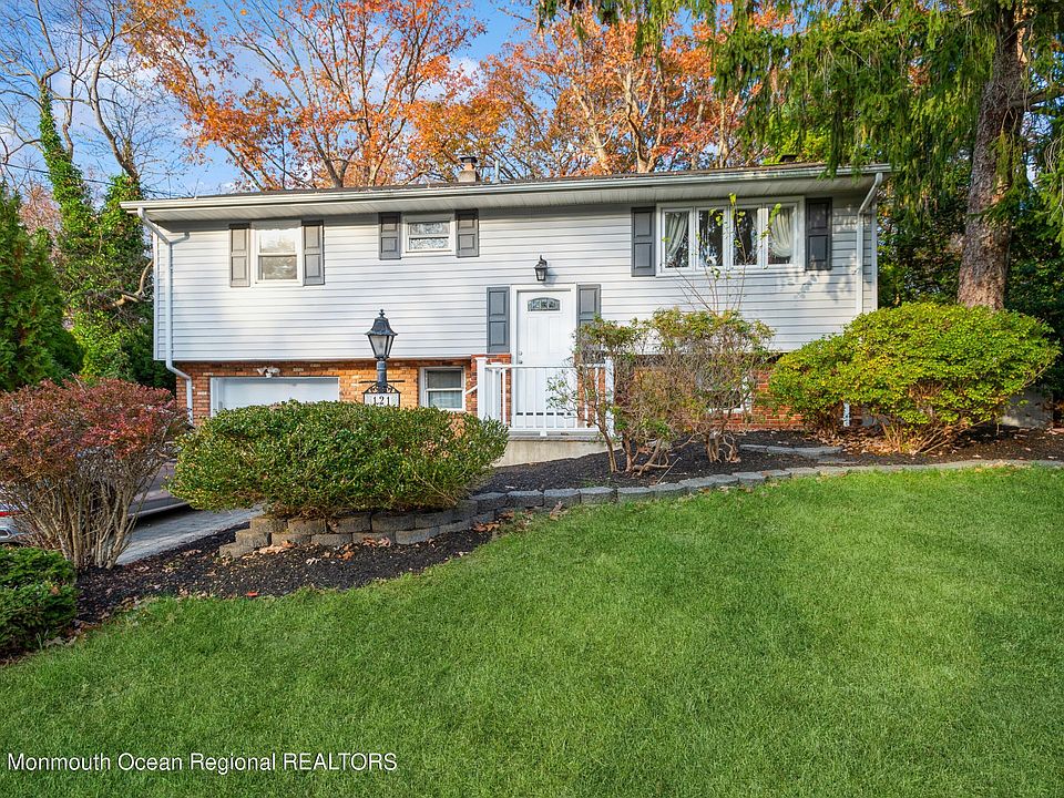 Beautiful Renovated Bi-level Home in a great location in Howell. The upstairs level has gorgeous hardwood flooring in the living room, bedrooms and hallway, updated bathroom, new kitchen with white cabinets and Stainless Steel appliances open to dining area with new double door opening to large two level decks. Downstairs has bedroom with new carpet, large family room with fireplace, new bathroom and 1 car garage with fully paved driveway. Private fenced backyard. Close shopping, schools, Route 9 & 195. Large Backyard for your enjoyment