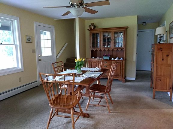 Enchanting, peaceful retreat on close to five acres of privacy. Gardens, pond and berry bushes. Contemporary Cape with 3 bedrooms, plus a private study. First floor Master suite. Open floor plan with living, dining and an eat-in kitchen. Screened porch off the back. Room for lots of rocking chairs on the long front porch. Over-sized two-car garage with workshop. Fenced in garden area.