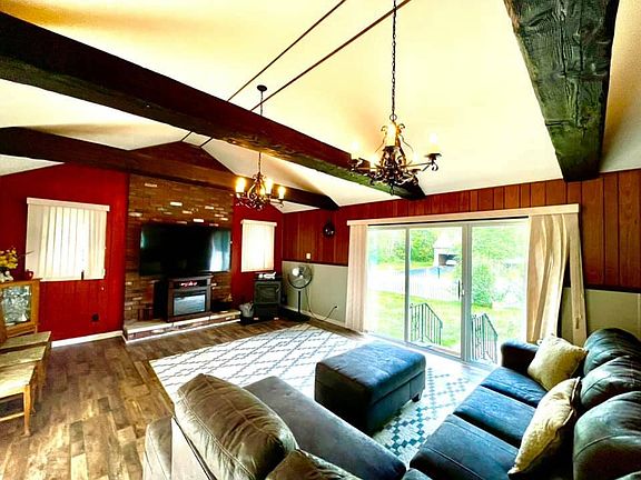 This cozy ranch is tucked away in a cul de sac sitting on over half of an acre of wooded property. Enjoy the serenity of your scenic wooded yard from the comfort of your oversized deck, all while being just minutes away from numerous area attractions. This 3 bedroom 1 bath ranch features a kitchen complete with oak cabinets, large dining room, living room with a wood burning fireplace, and a large add on family room with vaulted ceilings, and a pellet stove. There is a 2 stall attached garage and a large basement complete with washer and dryer hookups and all new updated electrical. Located just minutes from the Great Sacandaga Lake, Adirondack Animal Land, and many other area attractions. Historic downtown Saratoga is only 25 miles away as well. Whether you are looking for your forever home, or a seasonal home near the lake to use as an airbnb, this property offers huge potential.