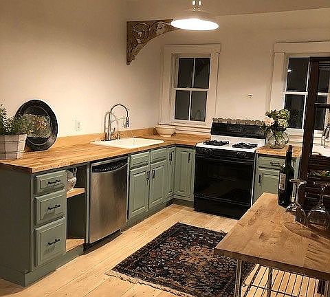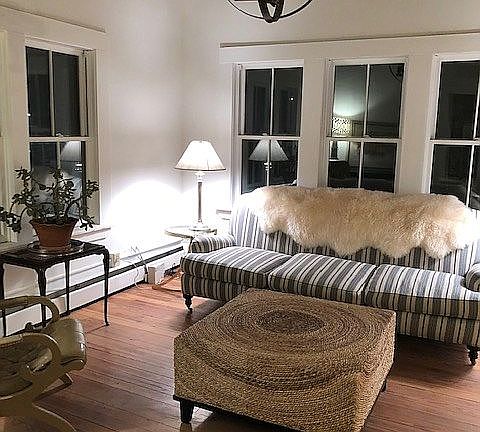 Sunny 1920 Gambrel/Colonial, wood floors, 9+ ceilings, new furnace, replaced farmhouse windows, front porch and back deck, basement, 2 car spaces in gravel driveway, storage shed for bikes/lawn mower,chimney if wood stove is desired, renovated kitchen, exterior and interior recently painted, 15 miles to Okemo Mountain Resort and 20 miles to Pico/Killington ski resorts.