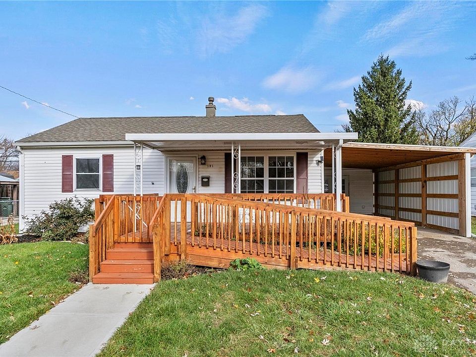 Welcome to this must see home in Fairborn! This three bedroom, two full bathroom home offers over 1,100 square feet of living space! When walking in the home you will find the spacious living room that consists of vinyl flooring and a big picture window providing natural light. To the left of the living room is your two well-sized carpeted bedrooms, and one of the two full bathrooms the home has to offer equipped with modern barnwood shiplap walls, a modern vanity, medicine cabinet and tub surround. Head over to the eat in kitchen with ample cabinet space, sleek laminate countertops and plenty of room for a dining table. Behind the kitchen is the addition that includes a primary bedroom with a walk in closet, an office/dining room, and a handicap accessible full bathroom equipped with a walk-in shower and modern finishes. The master bedroom also has direct access to the driveway/carport. Other features include handicap accessible ramp to the front porch, a hot tub, an above ground pool, big back patio, and a storage shed. Updates of worth noting are updated pex plumbing throughout the home, newer water heater, A/C unit, furnace and roof! This home is located near WPAFB, WSU, Fairborn Intermediate School, and more. Nothing to do but move in!Schedule a showing today!