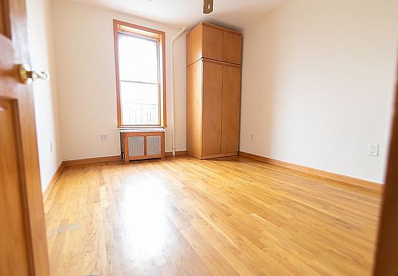 Very sunny 3 bedroom with hardwood floors. Tons of light in every bedroom. Huge main bedroom. Living room big enough for dining area. Perfect if you need tons of home office space. Short walk to McCarren Park. Steps to shops and dining on Franklin Street. Heat and hot water included. One month fee.