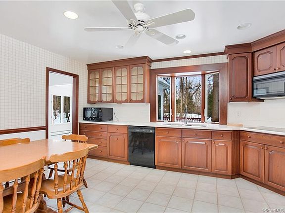 This solid North Stamford home is sited on a park-like level acre in fantastic cul-de-sac neighborhood only minutes to shopping, schools, Merritt Parkway, train stations and more. Offering open floor plan and large rooms for both formal and informal entertaining, this home is solid and well maintained. Features include large living room with fireplace, formal dining room opening to enclosed sunroom with huge windows and door leading to the deck, large updated eat-in-kitchen, large family room with a 2nd fireplace, 4 bedrooms with 2 full bathrooms upstairs, plus an additional 5th bedroom/office and full 3rd bathroom on the main level (perfect for in-laws, au-pair, or home office); and a 2 car garage with extended space for storage.