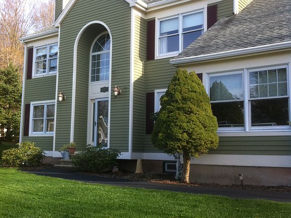 This Spectacular newly built home in the desirable "Doral Farm Estates" sits in the heart of North Branford and is a unique and custom built contemporary center hall colonial. This featured home has been meticulously maintained from top to bottom and sits at the end of a private cul-da-sac road on .87 acres with city water and city sewer! Upon entering you will find a dramatic two story foyer, large formal living room with fireplace which leads to a large, sun filled kitchen featuring corian countertops, stainless steel appliances and eat in area. Open to the kitchen is a formal dining area, and a sunken family room with gas fireplace, vaulted wood ceilings, a remodeled half bath w/ custom wood ceiling, wainscoting throughout and access to the 2 car attached garage with workshop area. On the 2nd floor you will find 3 large bedrooms, including a huge master suite with walk in closet and master bath featuring double vanity and soaking jacuzzi tub. The other 2 bedrooms are generously sized and share an updated full bathroom with a laundry conveniently located on the 2nd floor. And if that's not enough space...a fully finished lower level has an additional 980 square feet of living space with an "in-law" set up with living room, kitchenette with eat in area, large office/4th bedroom, and a full bathroom.