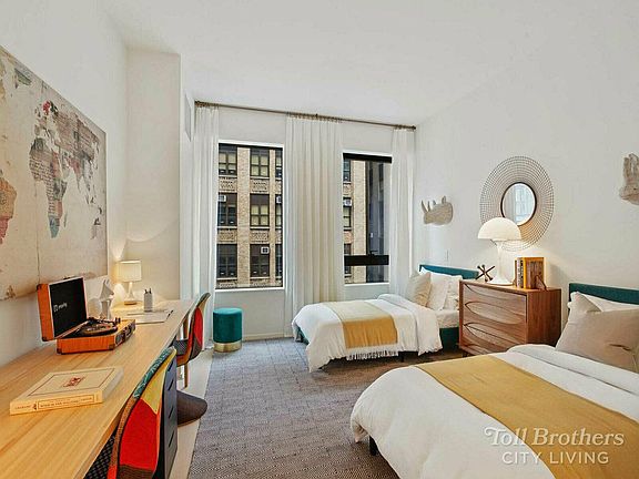 IMMEDIATE OCCUPANCY - SCHEDULE YOUR IN-PERSON OR VIRTUAL TOUR TODAY! Residence N1107, 2BR/2.5BA on the 11th floor in the North Tower, features incredible loft-like living space with up to 9'9 ceilings. Entirely east-facing over a quiet stretch of Lexington Avenue, this residence offers 1,707sf of interior space with separate dining area and plenty of storage (6 large closets). Both bedrooms are en-suite and can easily accommodate a king size bed and an office or seating area. The home features wide plank, white oak floors, Gaggenau appliances, polished quartz counter tops, and acid-etched, back-painted glass cabinetry with custom millwork interiors. The stunning primary bathroom clad with Calacatta Paonazzo marble countertops, tub decks, and accent walls is outfitted with radiant heated floors, white oak cabinetry, polished chrome Kallista fixtures and acid-etched glass shower doors. Residents enjoy a carefully curated selection of amenities that includes an indoor pool, a landscaped courtyard, an indoor/outdoor residents' lounge, a rooftop terrace with fire pit and grill, a private dining room and catering kitchen, a fitness center, a screening room, and a children's playroom. The building also offers an automated indoor parking system, bike storage, private storage, a 24/7 attended lobby, and full concierge services.