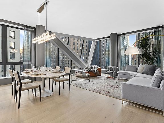 Immediate Occupancy! N1206 is a stunning 3BR residence on the corner of 23rd Street & Lexington Avenue. This architectural gem offers oversized windows in the living/dining space and nearly 2,500 square feet of interior space. All three bedrooms are generously sized and outfitted with ensuite full baths. Ceiling heights are appx. 10' tall. This unique layout also features a full-size laundry room equipped with a sink and additional storage space. Additional featured include oak flooring, Gaggenau appliances, polished quartz counter tops, and acid-etched, back-painted glass cabinetry with custom millwork interiors. Bathrooms are finished with Calacatta Paonazzo marble accent walls and counter tops. Residents will enjoy a carefully curated selection of amenities that includes an indoor pool, a landscaped courtyard, an indoor/outdoor residents' lounge, a rooftop terrace with fire pit and grill, a private dining room and catering kitchen, a fitness center, a screening room, and a children's playroom. The building also offers an automated indoor parking system, bike storage, private storage, a 24/7 attended lobby, and full concierge services.
