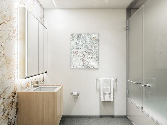 IMMEDIATE OCCUPANCY! This South facing over-sized 1BR/1.5BA residence boasts a 453SF private terrace and beautiful city views. The sun flooded home offers a generous living room, separate dining area, and a king-size bedroom. The open kitchen features a full suite of Gaggenau appliances, under-counter wine fridge, polished quartz counter tops, and acid-etched, back-painted glass cabinetry with custom millwork interiors. The stunning en-suite master bathroom features Calacatta Paonazzo marble counter top and is outfitted with white oak cabinetry, polished chrome Kallista fixtures and acid-etched glass shower doors. Residents enjoy a carefully curated selection of amenities that includes an indoor pool, a landscaped courtyard, an indoor/outdoor residents' lounge, a rooftop terrace with fire pit and grill, a private dining room and catering kitchen, a fitness center, a screening room, and a children's playroom. The building also offers an automated indoor parking system, bike storage, private storage, a 24/7 attended lobby, and full concierge services.