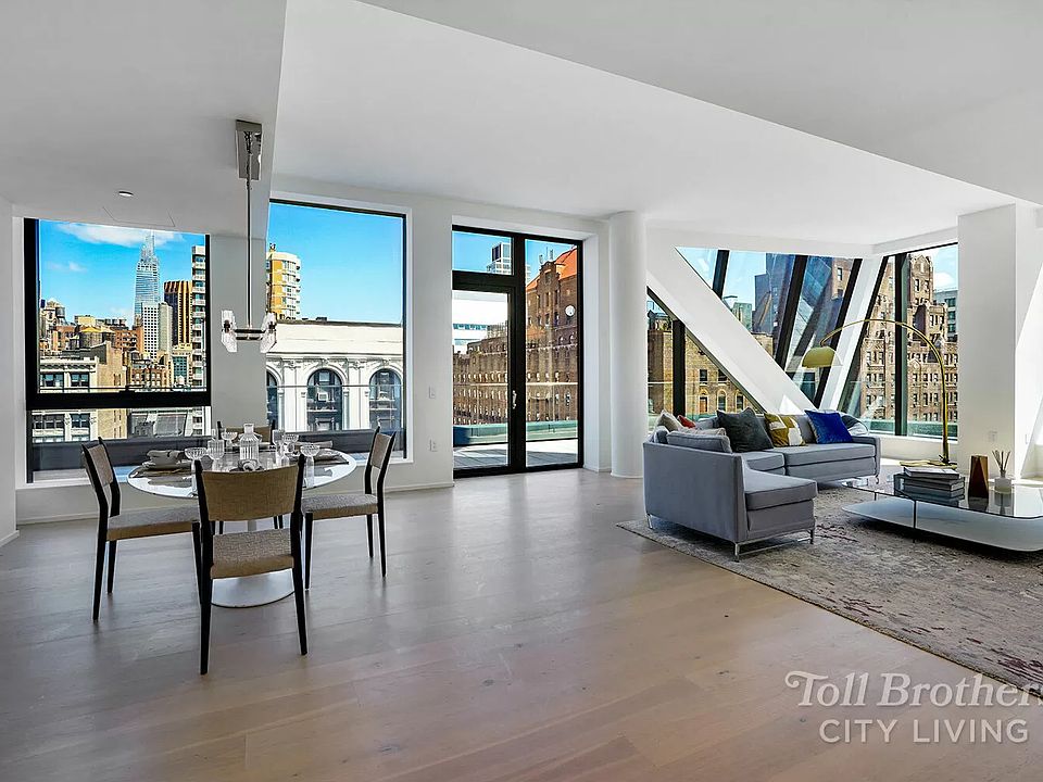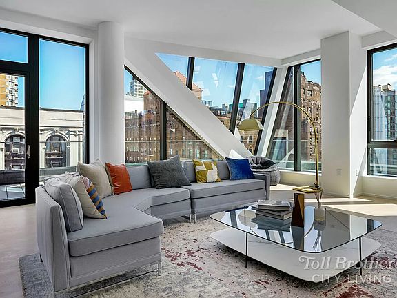 IMEDIATE OCCUPANCY! Residence N1304 is a stunning 5BR/5.5BA duplex with corner living room and primary bedroom, spiral staircase and wraparound terrace. With two guest bedrooms downstairs and three bedrooms upstairs, this unique & spacious home offers both northern and eastern exposure with large architectural windows. The eat-in kitchen boasts Gaggenau appliances, polished quartz countertops, and acid-etched, back-painted glass cabinetry with custom millwork. The stunning primary bathroom features Calacatta Paonazzo marble counter tops, tub decks, and accent walls, and are outfitted with white oak cabinetry, polished chrome Kallista fixtures and acid-etched glass shower doors. Residents enjoy a carefully curated selection of amenities that includes an indoor pool, a landscaped courtyard, an indoor/outdoor residents' lounge, a rooftop terrace with fire pit and grill, a private dining room and catering kitchen, a fitness center, a screening room, and a children's playroom. The building also offers an automated indoor parking system, bike storage, private storage, a 24/7 attended lobby, and full concierge services.