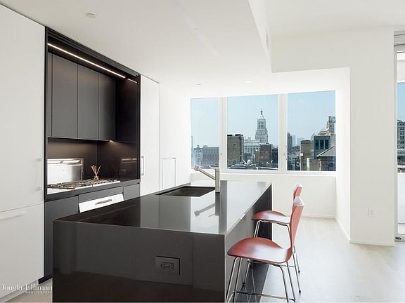 Be only the second person ever to live in this stunning and perfect newly constructed one bedroom with one and a half baths! This spacious south-facing apartment is approximately 933 SF and has an extremely thoughtful and functional layout. Blessed with fantastic City views, high ceilings, oversized windows, and wide plank white oak flooring, this sun-flooded yet quiet high floor residence also has an incredible private terrace, abundant closets, washer/dryer units, and two central heat and A/C zones. The elegant open kitchen is equipped with the full suite of Gaggenau appliances, polished quartz counter tops, and acid-etched, back-painted glass cabinetry with custom millwork interiors. The stunning master bathroom is outfitted with Calacatta Paonazzo marble counter tops, tub deck, and accent walls, and also has white oak cabinetry, polished chrome Kallista fixtures and an acid-etched glass shower door. This noteworthy condo is the first residential building in NYC designed by world-renowned architectural firm OMA, founded by Rem Koolhaas. Located at the intersection of the Gramercy Park and Flatiron neighborhoods, the 18-story boutique building features a fantastic array of amenities such as an indoor pool, a beautifully landscaped courtyard, an indoor/outdoor residents' lounge, a rooftop terrace with fire pit and grill, a private dining room and catering kitchen, state-of-the-art fitness center, a screening room, and a children's playroom. The full-service 121 East 22nd Street also offers an automated indoor parking system, bike storage, a 24/7 attended lobby, and full concierge services. One block from the 6 train, two blocks from the N/R/W and close to all the other 23rd Street stop subway lines and crosstown buses. Available for a lease start date of August 15-September 1.
