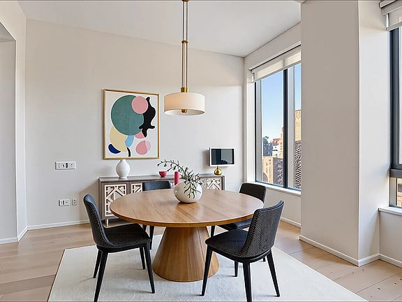 Experience luxury living in this elegant 1-bedroom residence at 121 E 22nd Street, a premier full-service building in the heart of Gramercy. This thoughtfully designed home features soaring ceilings, oversized windows, and sleek wide-plank oak flooring. The open-concept kitchen is equipped with top-of-the-line Gaggenau appliances, custom Italian cabinetry, and polished quartz countertopsperfect for both cooking and entertaining. The spacious bedroom offers a tranquil retreat with ample closet space, while the spa-like bathroom boasts radiant heated floors and premium finishes. Residents enjoy access to a wealth of amenities including a 24-hour attended lobby, fitness center, indoor pool, residents' lounge, screening room, and a landscaped rooftop terrace with panoramic city views. Located near Madison Square Park, Union Square, and some of the city's best dining and cultural destinations.