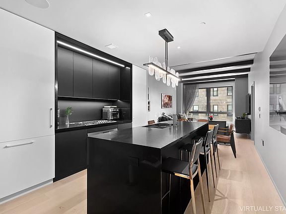 Pristine and completely customized two-bedroom condominium in a fabulous new luxury five-star development in the heart of Gramercy. Step into this entirely upgraded two bedroom, two and a half bath home in a full service boutique condominium on one of Gramercy's finest blocks. The oversized sprawling home offers 1651 SF of completely individualized space incomparable to any other unit in the building. Offering both Southern and Northern exposures, this home boasts beautifully crafted details throughout including soaring beamed ceilings, a gracious foyer entry area which features newly built custom closets, and a gorgeous powder room, which displays an eye-opening slab marble wall and radiant heated floor. The expansive open living room leads seamlessly into a high-end chef's kitchen replete with polished quartz countertops, Gaggenau appliances and custom millwork cabinetry. The pin-drop quiet primary suite is generously proportioned to include a separate seating area, two customized built-in closets, and a north-facing balcony which overlooks a beautiful landscaped courtyard. The stunning en-suite windowed spa bath features floor to ceiling Calacutta Paonazzo marble slabs, polished chrome Kallista fixtures, acid-etched glass shower doors and a radiant heated floor, and a gorgeous free-standing marble bathtub perched perfectly beneath the window. The secondary bedroom suite is equally gracious in size and enjoys natural southern light, abundant closet space and a pristine en-suite bathroom with slab marble and radiant heated flooring. Additional features include wide plank oak floors, automated Lutron lighting system, Sonos audio in every room, automated shades and/or curtains including blackout shades in the bedrooms, high-end finishes throughout, a private custom built laundry closet with full-size washer and dryer and folding area, which completes this beautiful offering. With only three apartments on the floor, S701 offers extreme privacy and is perfect for both primary residents and investors alike. 121 East 22nd Street is a full service building offering residents endless amenities every including 24/7 attended lobby, full concierge services, a fitness center, an indoor pool, a screening room, children's playroom, an indoor/outdoor residents lounge, a rooftop terrace with fire pit and grill, a private dining room and catering kitchen, a landscaped courtyard, bike storage and private storage. The building also offers an automated indoor parking system with spots that are still available for purchase from the Sponsor. *Also available for rent.
