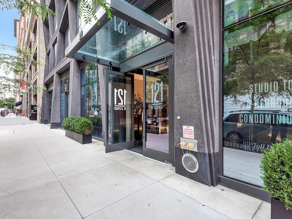 Located at the intersection of the Gramercy Park and Flatiron neighborhoods, between Park & Lex, 121 East 22 is a luxury full-service residential condo designed by world-renowned architectural firm, OMA. N804 is a spacious 780 SF north-facing apartment. It offers city views, high ceilings, oversized windows, and wide plank white oak flooring. This apartment also has abundant closets, washer/dryer units, and central heat and A/C. Sorry, No Pets. The open kitchen is equipped with the full suite of Gaggenau appliances, polished quartz counter tops, and acid-etched, back-painted glass cabinetry with custom millwork interiors. The bathroom is outfitted with Calacatta Paonazzo marble counter top and accent wall, and is outfitted with white oak cabinetry, polished chrome Kallista fixtures and acid-etched glass shower doors. Residents enjoy a carefully curated selection of amenities that includes an indoor pool, a landscaped courtyard, an indoor/outdoor residents' lounge, a rooftop terrace with fire pit and grill, a private dining room and catering kitchen, a fitness center, a screening room, and a children's playroom. The building also offers an automated indoor parking system, bike storage, private storage, a 24/7 attended lobby, and full concierge services. The building also offers an automated indoor parking system, bike storage, private storage, a 24/7 attended lobby, and full concierge services. Located at E22nd street between Park Ave & Lexington Ave, close to the 6 train, N/R trains and the F train.