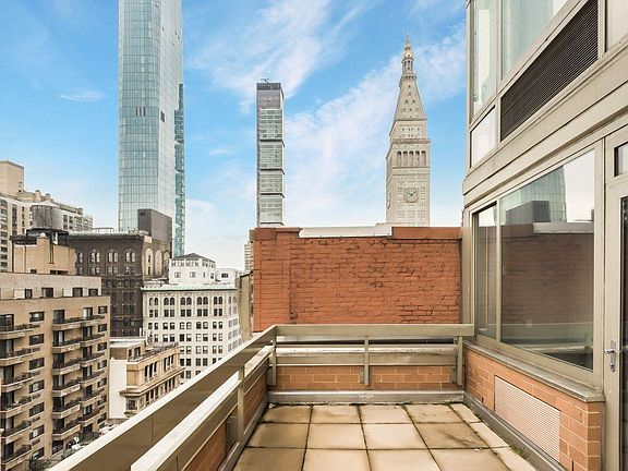 An escape from the Hustle and Bustle below in the Flatiron District. Fantastic south facing views from the over sized open terraces (with plenty of room to relax and entertain) complimented by the views through the floor to ceiling windows. You'll delight in the spacious sun drenched quarters and fine features that include rich Brazilian cherry wood floors, recessed lighting, Bosch washer and dryer, limestone floors and Kohler fixtures in the baths. Open concept kitchen with custom cherry cabinets (with frosted glass panels) granite counter tops and stainless appliances. The master has an en suite bathroom with a second full sized bathroom. The apartment, located at the Crossings built in 2005 with interiors by designer Andres Escobar, on East 23rd between Park Ave South and Lexington, treats you to conveniences like a full-time doorman, live-in super, part-time concierge, fully-equipped fitness center, resident lounge, bike room and outdoor patio. Enjoy the best of Manhattan living at an ideal address just a block from Madison Square Park, seconds from the 6 train (the elevator is on the same block). Convenient to all major subway lines, as well as some of the trendiest shops, cafes and restaurants in the City.