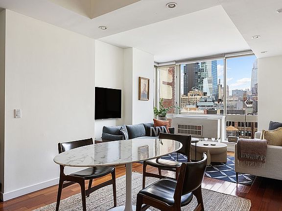 The best deal in Flatiron! This one bedroom high in the sky offers bright unobstructed views of the city, including all the way to the Empire State Building and Chrysler Building. High ceilings, wide-plank Brazilian cherry hardwood flooring, and floor-to-ceiling windows throughout (including the bathroom) showcase just some of the apartment’s stunning features.