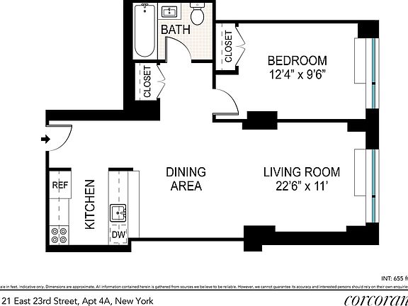 This 655 square foot apartment home has 1 bedrooms and 1.0 bathrooms. This home is located at 121 E 23rd St APT 4A, New York, NY 10010.