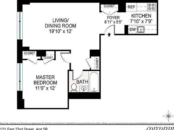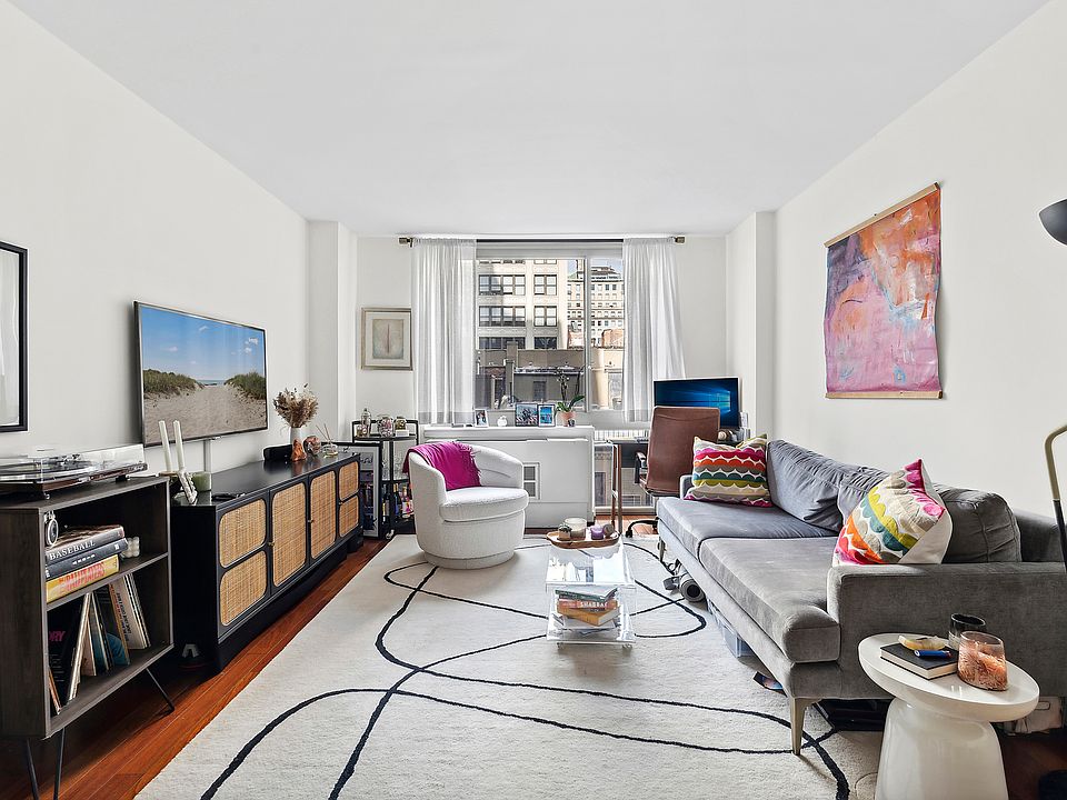 NO pets! NO flex Walls! Tenant Occupied, 24 Hour notice required. Welcome home to this spacious and pin-drop quiet 1 bedroom at the ideally located "Crossing 23rd," condominium. The apartment is lined with Brazilian cherry-wood flooring and the kitchen is outfitted with granite countertops, glass subway tile backsplash, stainless steel appliances, gas range stove, dishwasher, and plenty of storage. The expansive living room can accommodate a large dining table and/or a functional work from home space. The primary bedroom is generously sized with dual closets. Storage abounds in this apartment with a total of 4 large closets throughout. This apartment faces North and is ideal for anyone who needs a quiet setting.The value here cannot be beat, as this apartment includes basic cable and high-speed internet.Impeccably located in the iconic Flatiron District near the Gramercy Park neighborhood, this apartment is seconds from Madison Square Park and the best dining and nightlife NYC has to offer. Grocery stores and 24-hour pharmacies in the area are abundant and include CVS, Morton Williams and Walgreens just across the street. Public transportation is ideal with easy access to #6,N/R/W and quick transfer to 4,5,Q and L. Crossing 23rd is a true white glove service building with 24-hour door staff, concierge services, valet dry cleaning, commercial laundry room, fitness center, and beautiful communal garden roof deck.
