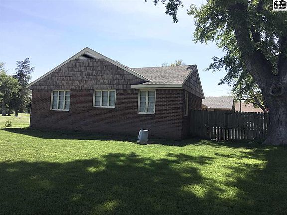 This wonderful brick home across from the Lyons Municipal Golf Course faces south and has a beautiful view of the Golf Course. This home has two large bedrooms and 2 bathrooms. The master bedroom has a dressing room or sitting room attached. In the living room it has a unique architectural ceiling that really sets it off. In the kitchen the counter top was replaced in 2004. In the bathrooms new sink and counter top were replaced in 2015 and 2016. New dishwasher and disposal in 2017, whole house electrical upgrade and breaker box in 2018. New breezeway door, storm door & interior door to garage replaced 2018. Back door with pet entrance in 2019. Sprinkler & Sentricon systems are some other specials to detail in this home. Shed in back for storing yard equipment.This is a must see.