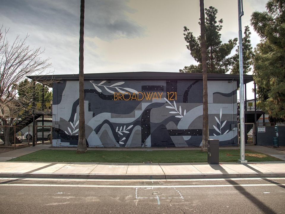 Available Now! Broadway 121 is a beautifully renovated modern apartment building just off of Mill Avenue & Broadway. The location features easy access to Arizona State University, Downtown Mill Ave entertainment, and Daley Park. Broadway 121 features clean minimalist styling with exposed block accent walls, naturally finished concrete flooring, and beautiful quartz countertops in the large eat-in kitchens and bathrooms. Each unit features an in-unit stackable washer/dryer and a high efficiency (14 SEER) central HVAC system. Units are now outfitted with wall mounted 55" Smart TVs (easy to cut the cord) and electronic entry. One reserved & covered parking space per resident (we do not have guest parking on site). Common areas include mature palm trees overhanging a gazebo area with a gas bbq grill, dog stations and bike racks! $200 pet deposit. $50/mo pet rent, includes up to 2 pets maximum. All pets must be explicitly approved, no aggressive breeds or mixes. Visit us at Broadway121.com to apply $50/mo flat rate for Water/Sewer/Trash/Recycling. Resident responsible for SRP Electric. 1.8% City of Tempe rental tax. Renter's insurance required.