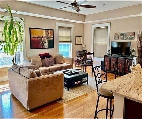 121 E Cottage St #4, Boston is a gorgeous 2 Bed 1 Bath condo with 2 Deeded Parking Spaces, Separate Deeded Storage area situated in a professionally managed pet-friendly building. The living room is an inviting centerpiece, showcasing a tray & vaulted ceiling, creating an atmosphere of spacious architectural interest. The unique ceiling design & recessed lighting enhances the overall ambiance. Kitchen is equipped with a granite peninsula, providing ample space for meal preparation & casual dining. 2 generous-sized bedrooms offer flexibility for a guest room or home office. One of the bedrooms features a skylight, inviting natural light to pour into the space. Enjoy year-round comfort with central air, heat & the ease of in-unit laundry. Additional perks: a serene outdoor common area. Perfectly situated in a great location near South Boston, South Bay Mall, dining, shops and a quick drive to UMass, JFK Library & Beaches. Near buses, trains & easy highway access. Furniture Negotiable