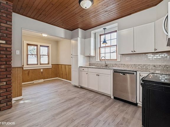 Attractively planned and updated 4 bedroom, 2 bath home on a flat lot. The living room has built in shelving and is a cheerful center for everyday living. Updated kitchen with sleek white cabinetry and sparkling granite counter tops featuring all new stainless steel appliances and a charming breakfast nook. The formal dining room will add elegance to every meal. The back den has many possibilities and leads out to the back deck. New roof, gutters, downspouts, luxury vinyl flooring, plush new carpeting, and basement professionally waterproofed with french drains.