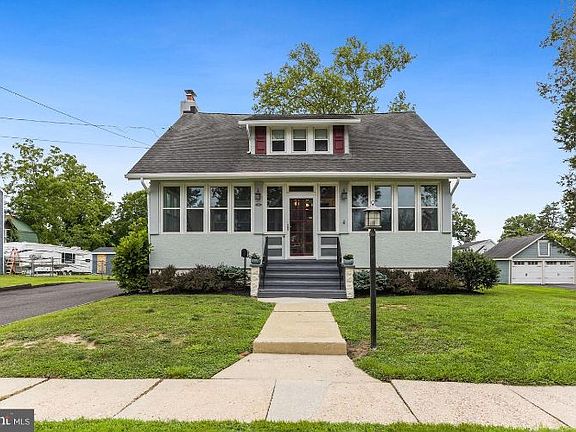 Welcome home to this 5 bedroom, 2 full bath home located in Sewell, NJ in Mantua Twp. Enter in to this 1930's beauty through the enclosed front porch that features a wood plank ceiling, custom stone accent walls, tile flooring, and an abundance of windows welcoming in the sunlight. The living room, dining room, kitchen, and main floor hallway all have hardwood flooring. The large living room has a wood insert fireplace with a stone surround and built-in electric wall sconces. Down the hallway enter into the dining room through double glass-paned doors. The adjacent kitchen is a Baker's Kitchen with custom pull-outs, including a floating island that tucks under the counter. Stainless steel appliances service this kitchen. Enjoy your culinary adventures while looking out of your kitchen window into the side yard. There are 2 bedrooms on the main floor and 3 bedrooms on the 2nd floor. The closets are spacious and there are extra storage closets throughout. This home has a full basement with a french drain system. Laundry is located in the basement with 2 washers and 2 dryers. Outside, the detached garage is larger than it appears with a 4 car capacity. Multiple zoned heating and air. Property is being sold in "as is" condition.