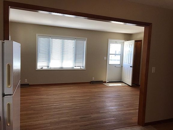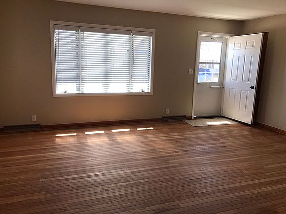 Enjoy the small town living. Perfect for the first time homeowner or if you are looking to downsize. Two bedroom, one bath home offers original hardwood floors and newly remodeled bathroom from the studs out. New W/D stacked unit stays along with all appliances. All new 2” blinds and bathroom/kitchen fixtures. New gutter leaf guards for maintenance free living. New floor in kitchen and new fence in back. New garage door opener in the heated garage with new blacktop driveway. Two small lots that are very easy to maintain. Just a half block from the park.