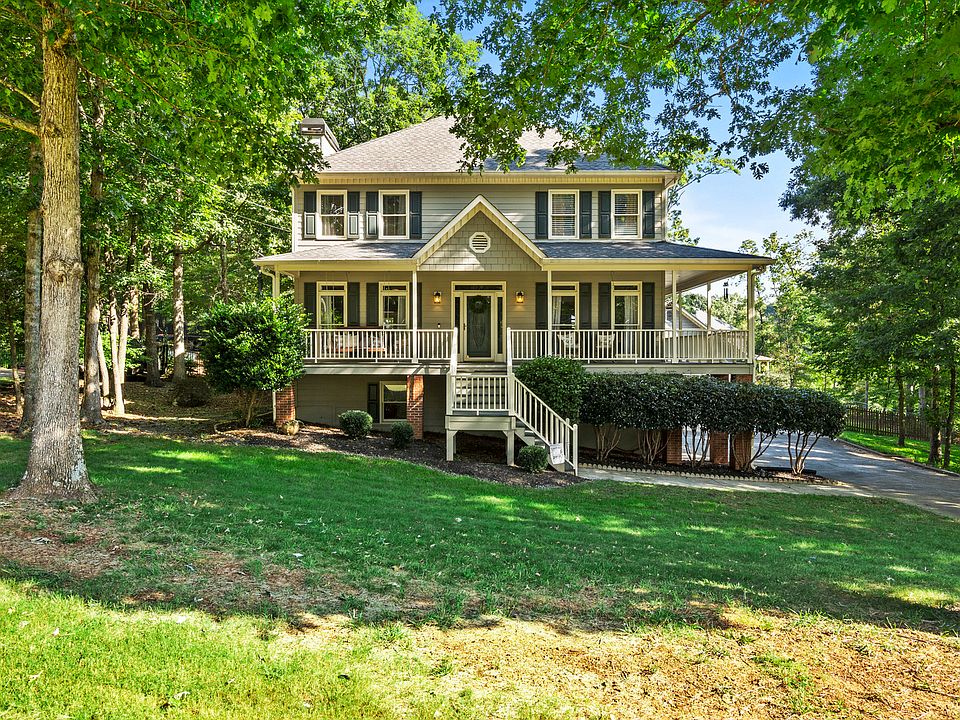 Gorgeous large spacious lot w/4 car garage.Detached 2 car w/workshop opportunities. Wrap around covered front porch w spacious main level living w hardwood floors on most of main.Windows w transom accents. Gigantic family room w/massive stone fireplace and attached sunroom or office area.Open kitchen w white cabinets,breakfast bar,granite counters and views of backyard.updated colors throughout.4 beds upstairs.Spacious master w updated master bathrm w granite counters,framed mirror and tiled floors. Finished basement area makes great mancave,playroom or office area. Fantastic schools. Quiet subdivision. Perfect lot for a pool.