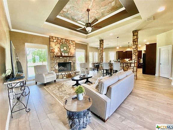 Extraordinary home inside and out, custom all the way from the floors to the hand painted ceilings. Step through these beautiful double doors and into your next piece of Salado countryside, only minutes from downtown! Spacious 2.6 acre lot meticulously designed for large gatherings, football Sundays and more! Large windows through out living area and kitchen bring lots of natural light. Beautiful master bed with separate shower and garden tub in the master bath. Walk in closets throughout the home, bountiful storage, and a bonus room upstairs! It's apparent this home has been taken incredible care of, and every detail was carefully planned out. Spectacular trees throughout the entire lot top off the preeminence of this coveted Salado home. Don't just take our word for it, come see 121 Eagle Rock for yourself!