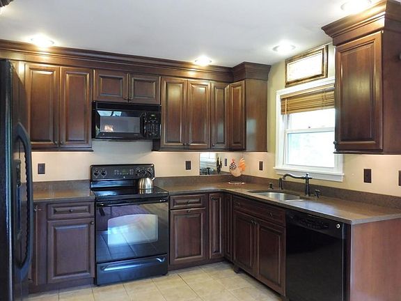 Attractive and updated three bedroom Raised Ranch with deeded beach rights to Wyman's Lake. Beautiful and super functional applianced kitchen featuring Cherry cabinets, quartz countertop under cabinet lighting as well as a coordinating island. Dining area has a slider overlooking the deck and back yard and is also open to the living room. Hardwood floors throughout most of the main living area. Updated bathroom with built-in shelving and subway tile around the tub. The lower level has a finished family room. In addition, the walk out lower level has a workshop and storage area. Convenient commuter location. Roof & Gutters new in 2012. OFFERS DUE BY 5:00 PM ON SUNDAY, JUNE 16TH.