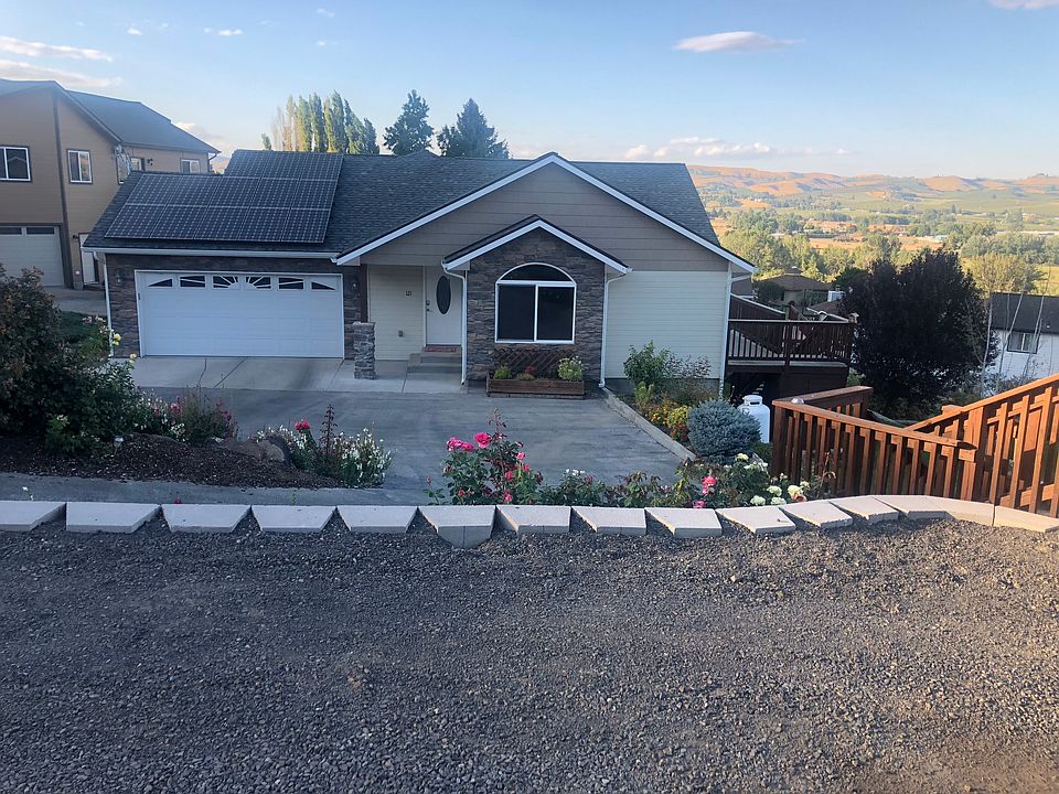 FREE ELECTRICTY with this Solar Array Powered Home that can produce more power than you use! Finished in 2010 this 4BR, 3 BA home w/ 2952 s/f looks like new w/ fresh paint and carpet. Spectacular views across the Naches Valley from house and large deck! Beautiful hardwood floors, granite tile kitchen countertops and .5 ac lot. Large living spaces on both levels. Set on a quiet cul de sac in the Naches School Dist. Double-sided propane FP between kitchen and living room. Jetted tub in master bathroom. Finished daylight basement with large family room, outstanding floor plan. Spacious laundry room and storage areas. New exterior paint. New hot water heater. . New carpeting in upstairs living room and hallway. Large deck. Pressurized irrigation ($55yr) w/built in sprinkler system.
