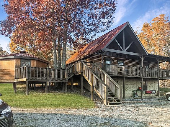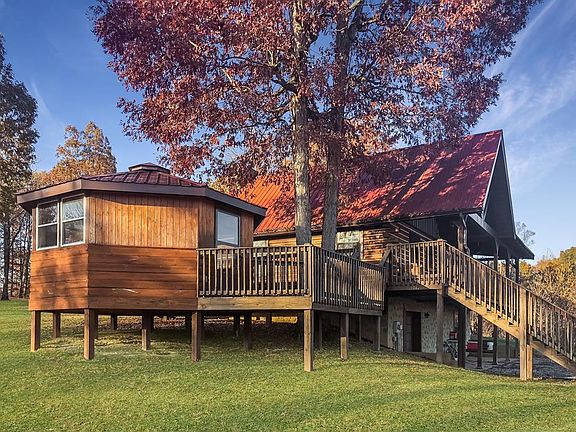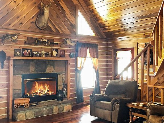 Stunning log home on 29.3 acres with fantastic view. Horse barn w/3 stalls, detached workshop w/electric, tractor shed and stocked .5 acre pond. Beautiful interior with open floor plan, loft and finished basement. Covered deck to enjoy the view from; stone fireplace in living room w/gas logs, master bath has jetted tub.