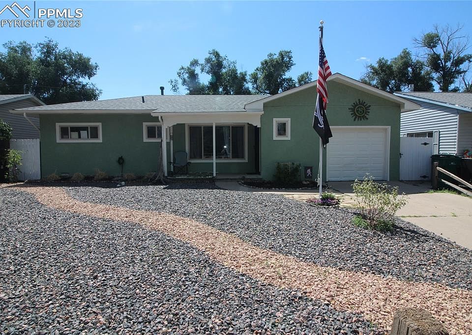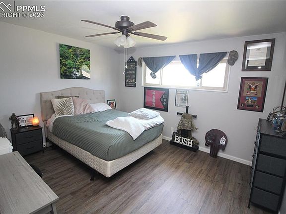 Welcome home to this beautifully updated 3 bedroom 2 bathroom, 1 car garage home! Beautiful LVP flooring throughout the entire home! The spacious living area leads to your bright, open kitchen with tons of counter space for the chef in your family! Breakfast bar, newer faucet, sink and stainless steel appliances all stay! Newer vinyl windows throughout, 6 panel doors, recessed lights, neutral paint, modern bathrooms with newer vanities, flooring, and tile. This great home boasts a spacious backyard with a raised bed for gardening, a shed, and an adorable front porch as well as a newly xeriscaped front yard! Close to I25 and military bases, including Fort Carson, Petersen, and Schriever AFB! With recently added A/C for those warm Colorado summers, there is nothing left to do here but move in!