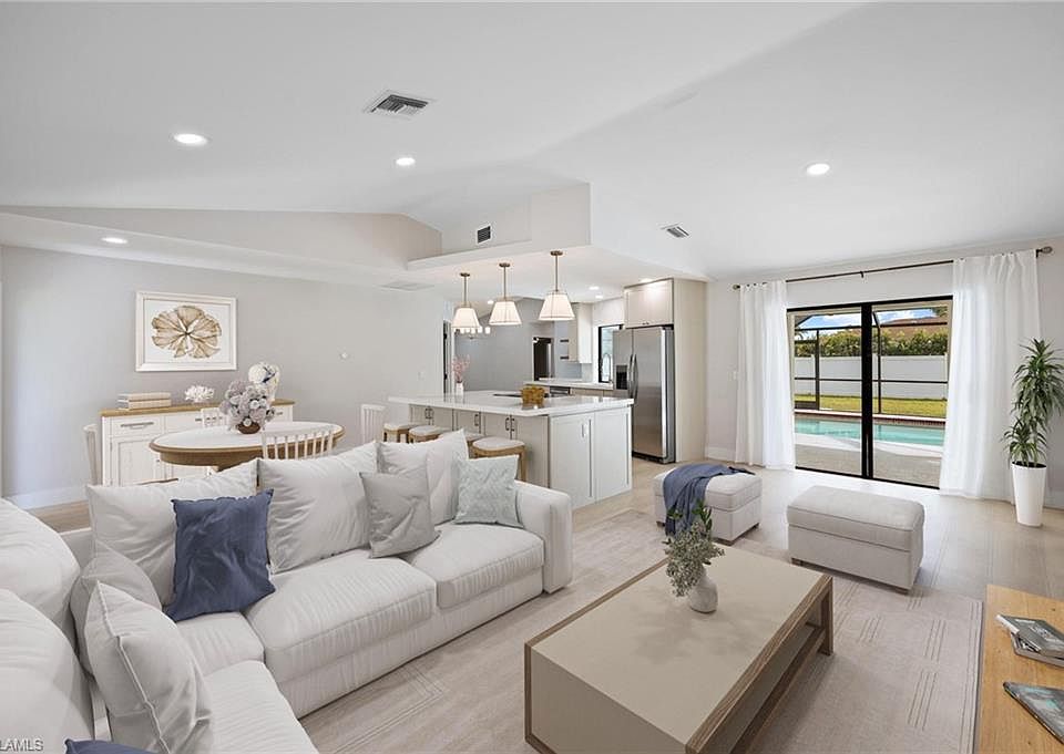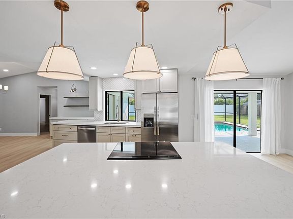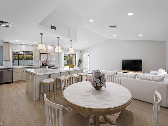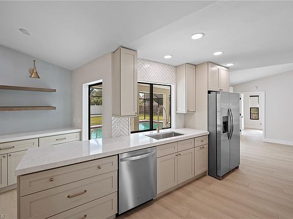 This FULLY renovated Palm River Estates 3-bedroom PLUS den home in North Naples offers the perfect blend of luxury and comfort. The property boasts an array of impressive upgrades, including a NEW AC, NEW ROOF, and NEW stainless steel appliances, ensuring worry-free living. Top quality oversized Luxury Plank flooring, Brand New Kitchen and bathrooms, high end light fixtures and extensive bathroom tile work - the home has not been lived in since the remodel! ALL three bedrooms have WALK IN closets. The elegant kitchen showcases beautiful MITERED EDGE quartz countertops, modern backsplash and a spacious island, making it an ideal space for culinary enthusiasts. The backyard oasis features a refreshing pool, providing the perfect spot to relax. Located just minutes away from Beach and Mercato, this home offers access to some of the finest amenities Naples has to offer. WITH ZERO HOA, RENTAL RESTRICTIONS OR FEES means greater flexibility for homeowners. Whether you seek a tranquil retreat or a lively entertainment hub, this North Naples gem has it all. Embrace the Florida lifestyle at its finest in this remarkable and beautifully updated residence.