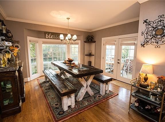 You don't want to miss this custom southern style home with oversized wraparound porch! A perfect spot to enjoy your early mornings or unwind during late afternoons. Inside features custom cabinetry and granite countertops in the kitchen and a large dining room complete with bay window and French doors that open out onto the porches. Other home features include office with built ins, smooth ceilings with can lights throughout and oversized master suite with French doors that open onto a private area of the porch complete with a hot tub! Bonus room over garage, complete with a half bath, is the perfect hangout for teens or a man cave. Unfinished full basement already has a full bath installed. All of this on almost an acre lot next to the Brushy Mountain Golf Course makes this home a dream!