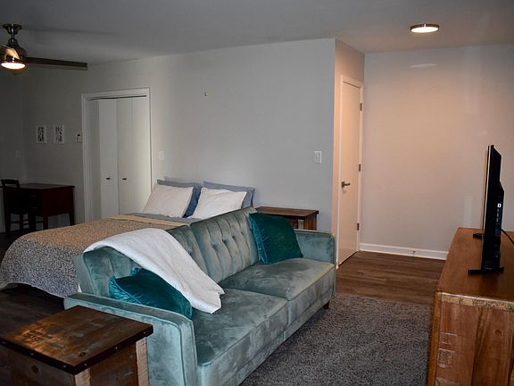 10 photos Furnished studio with totally renovated kitchen - dishwasher, disposal, full size fridge and more! 2 coffee makers to keep you going. In-unit laundry, smart TV, plenty of closet space, and off-street parking. Rent includes electric, water, and WiFi. Option to rent attached 2+ car garage for cars/storage/workshop/hobbies for additional charge. No smoking, max 2 tenants at this property. Rent includes electric, water, and WiFi. Background/credit check required. Monthly income must be 3X greater than monthly rent.