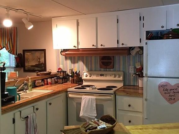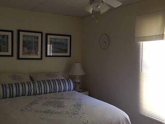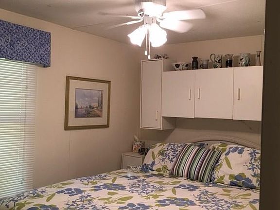 Lake front Nice 2 bedroom single wide w/sunroom, screened porch, circle drive, storage building, level lot, Pier & floater.