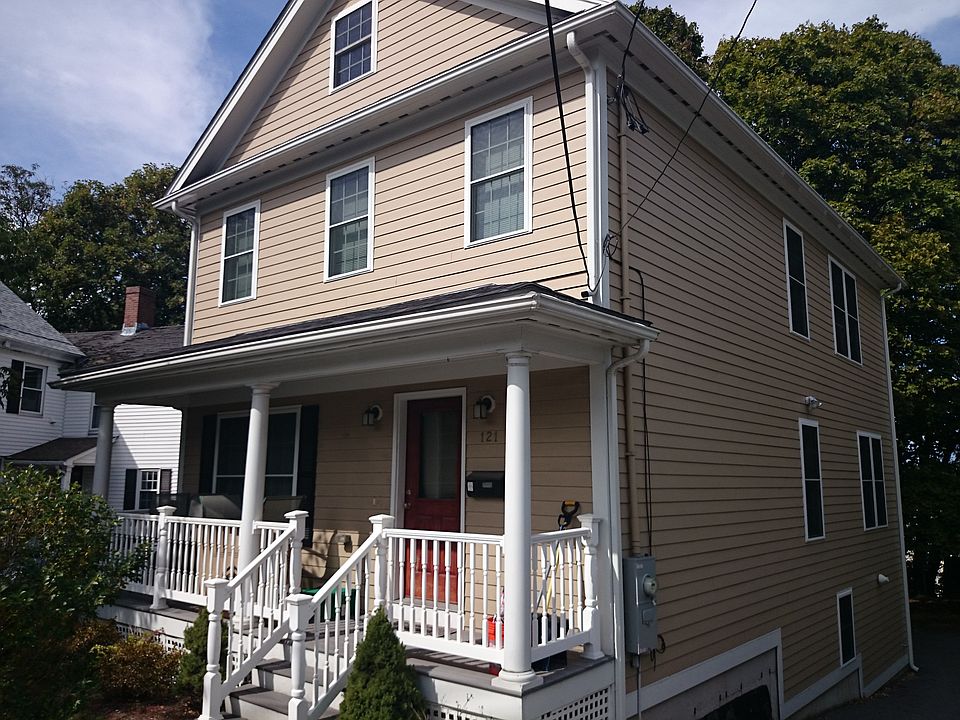 This gorgeous single family home was built from the ground up in 2008. Hardwood floors throughout the first floor. Decorative crown molding and classic wainscoting throughout. Kitchen includes sleek black appliances and granite countertops with oak cabinets. Spacious composite deck off the kitchen and a classic New England style front porch. Two Full baths and one half bath on the main floor. Washer and Dryer in unit (no fees). Large bedrooms and closets. Driveway parking that fits 5 cars included in rent. Utilities not included (natural gas heating and cooking). Great location for commuters and close to all public transportation. No Pets Allowed. Available for 9/1/19 start date!