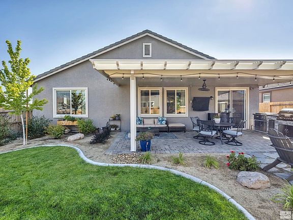 Welcome to your dream home in Dayton! This beautifully upgraded residence offers 1,695 square feet of luxurious living space, featuring 3 spacious bedrooms and 2 modern baths. Step inside to discover a stunning open-concept layout where no detail has been overlooked. The heart of the home is the gourmet kitchen, boasting a large island with exquisite quartz countertops and top-of-the-line upgraded appliances, perfect for the home chef., Throughout the home, you'll find upgraded flooring, contemporary lighting, and premium fixtures, enhancing the elegance and functionality of each space. The living room is a cozy haven with custom cabinetry flanking the stylish tile fireplace, ideal for relaxing or entertaining guests. The primary bedroom is a true retreat, complete with a walk-in closet and a luxurious en-suite bath featuring marble tile in the shower. High-end window coverings provide privacy and style, adding to the upscale ambiance of the home. Outside, the fully landscaped backyard is an entertainer’s paradise. Enjoy evenings by the fire pit or unwind under the covered patio with a ceiling fan, creating the perfect setting for outdoor gatherings. With a 2-car garage providing ample storage and convenience, this home is as practical as it is beautiful. Bring your toys, ride straight from the house. Dayton Valley Golf Course is a hop, skip and a jump, right across Dayton Valley Rd. Don't miss your chance to own this meticulously upgraded gem on Finney St. Schedule a viewing today and experience the epitome of modern living in Dayton!