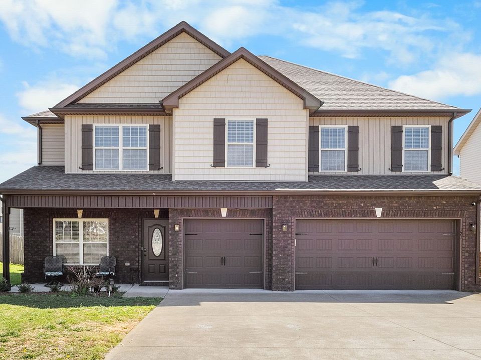 This beautiful open concept contemporary 4 bedroom 3 bath home is located just minutes away from the West Creek school complex and Fort Campbell. Located on a level lot with a privacy fenced backyard, you will also be just minutes away from the interstate. The large kitchen features a breakfast bar, stainless steel appliances, granite counters, and tile floors. The spacious living room features a fireplace and hardwood flooring. Guest bedroom or office with a full bath on the main level. Primary bedroom upstairs features tray ceilings, an attached full bath with a jetted tub, and a walk-in closet. Plus 2 additional bedrooms upstairs with large closets and a large bonus room over the 3 car garage. Covered back deck and a covered front patio! Pets allowed with $300 pet fee per pet. No more than 2 pets, no vicious breeds or puppies under 12 months old.