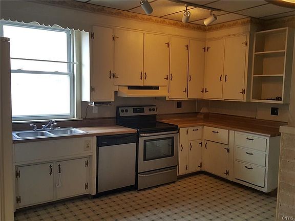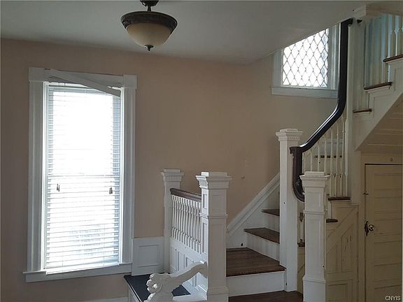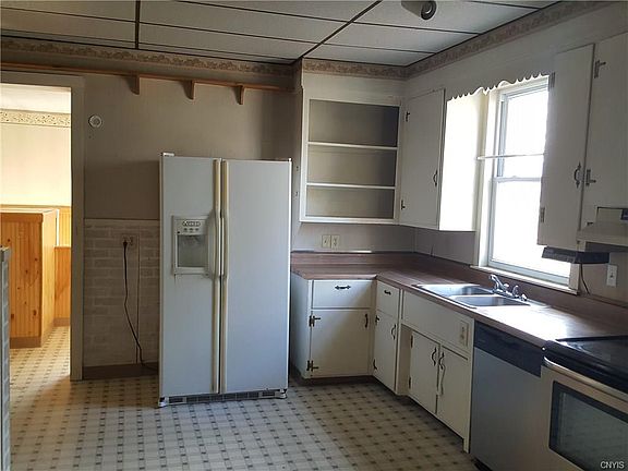 $2,500 CREDIT TO BUYERS. HOME WARRANTY. PRICE REDUCED! If space is what you need and to stay in budget, this home will suit your needs. With an old style feel, this fully applianced home has 5 Bedrooms, 1 1/2 baths, a den(which could be a first-floor bedroom), formal dining, eat-in kitchen, laundry room, X-large living room w/wood burning fireplace, front foyer, detached 1 1/2 car garage and an easy-to-maintain yard. Hardwood floors throughout the first floor. Many original features throughout add to the charm of this home. Close to schools, shopping and only 10-15 minutes to Fort Drum. New furnace, Central A/C, HW, garage roof, upstairs carpet to name a few items. Cosmetic updating to make it your own, is all this home needs. Don't miss out...call to schedule your personal viewing today.