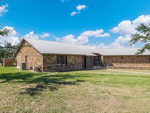 Charming Country Home with Modern Upgrades on 4+ Acres Welcome to your dream retreat just outside of town! Located less than a mile from Goldthwaite High School, this beautifully renovated 3-bed, 2.5-bath rock home sits on 4+ acres and offers the perfect blend of small-town charm, modern updates, and room to breathe. Step inside and you’ll find a bright, inviting home that has been thoughtfully remodeled from top to bottom. The spacious living areas feature fresh textured walls, crown molding, new floors, updated lighting, and an abundance of natural light through recently replaced windows and skylights. The kitchen and bathrooms have all been tastefully updated, giving the home a fresh and timeless feel. The large laundry room that connects to the garage has plenty of room to spread out with custom sink and half bath perfect mud room set up. This property is truly move-in ready Recently renovated : a 30–50 year standing seam metal roof, HVAC system with new air handler, some plumbing updated to PEX , water softener, new water heater, and a deep private well with new pump. Every detail has been carefully considered—from new electrical switches and outlets to a DVR camera system for added security. Outside, enjoy wide porches finished with textured concrete, mature landscaping, and plenty of room for family, pets, or a garden. A large shop with lean-to offers endless potential for hobbies, storage, or projects, complete with its own mini-split heat AC and plumbing. Incredible long views, great space for gardening and play. Whether you’re sipping coffee on the porch, working in the shop, or enjoying the privacy of your own acreage just minutes from town, this home offers the best of country living with all the modern comforts. Come see why this Goldthwaite gem is more than just a house—it’s a place to call home.