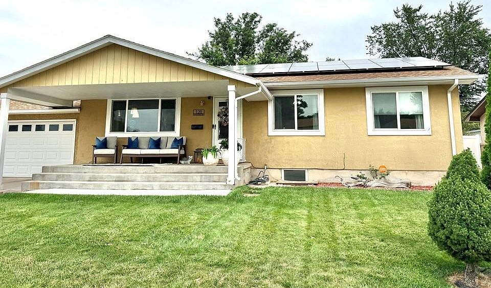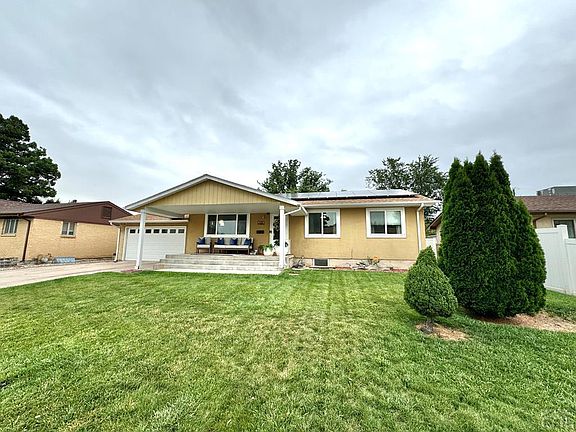 Welcome to this stunning Sunset Park rancher boasting 4 bedrooms and 2 bathrooms. The front and back landscaping is beautifully manicured, creating a serene outdoor oasis. Step inside to an open concept living space, highlighted by a remodeled kitchen with gorgeous cabinets providing ample storage! The chef's kitchen is equipped with modern appliances and a gas log fireplace in the dining room, ideal for cozy nights in. Convenience is key with laundry hookups available both upstairs and downstairs, along with a kitchenette/laundry area downstairs for added functionality. Relax and entertain guests on the beautiful covered porch in the front or the expansive patio space in the back. This home is perfect for those who love indoor-outdoor living and enjoy the finer things in life. DID I MENTION SOLAR? $10 ELECTRIC BILLS!! Don't miss out on this incredible opportunity to call this Sunset Park rancher your own.