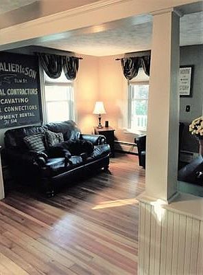 This home has Curb Appeal Plus! Great location in quiet dead end neighborhood. Lots of style. New Porch with composite decking and vinyl railings. New, attractive front door. New Pro replacement windows. The New Upscale Heating System is an Energy Saving, Nevian natural gas system. The interior boasts a Living Room open to the Dining Room with Columns between and Gleaming Hardwoods. The Galley Kitchen has newer Stainless Steel appliances. A Mud Room off the Kitchen is great for coats and boots in all kinds of weather. The Master bedroom has a Walk-in Closet and Hardwood Floor. Second bedroom also has a Hardwood Floor and a decorative, fun chandelier. The basement has a Work-out Room as well as a potential third bedroom or an open area to be used as you like. The ample back yard is Fenced in and has a Patio Area and a Shed for extra storage. Convenient for Commuters. Minutes to T and Highway. This is a very attractive home for a "Lucky Buyer'!